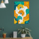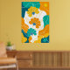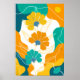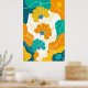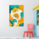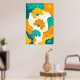 Resumen de diseño de fondo con flores en oro, naranja y azul en el centro. Adecuado para colgar en cualquier habitación que necesite un bonito toque de color.
