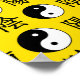 Antecedentes amarillos Chino Zen yin y yang texto y Símbolos de diseño de repetición sin fisuras
