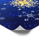 Navidades azules con copos de nieve de oro y joyas blancas. Copos dorados de nieve. XMAS.