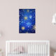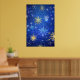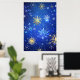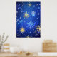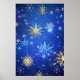 Póster Fondo azul XMAS con copos de nieve dorados