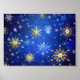 Póster Fondo azul XMAS con copos de nieve dorados