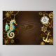 Póster Fondo de madera con caballito de mar mecánico