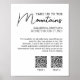 Esta alternativa al registro de bodas Letrero de Fondo para Luna de Miel presenta el título "Llévanos a las montañas" en fuentes modernas negras sobre un fondo blanco liso. Agregue fácilmente hasta 2 códigos QR para invitar a sus invitados a hacer una contribución a sus vacaciones soñadas enviando donaciones en efectivo a su aplicación de pago con sus teléfonos móviles.