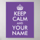 Póster Fondo púrpura mantener la calma y su nombre
