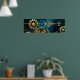 fondo turquesa, texturado, de vapor punk con bronce y oro, llave de plata y reloj. Estilo Steampunk.