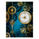 fondo turquesa, texturado, de vapor punk con bronce y oro, llave de plata y reloj. Estilo Steampunk.