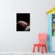 A bold close-up of a football against a dark background, the warm lighting emphasizing the rich leather texture and white laces. This dramatic sports photograph brings a modern, sophisticated edge to any football player's bedroom, teen hangout space, or game room.