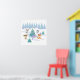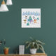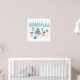 A poster with a whimsical Christmas scene. Happy forest animals dancing around a decorated Christmas tree. Festive holiday watercolor design.