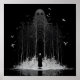 A design featuring a figure standing before a forest entity