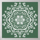 This white mandala sits on a forest green background. The colors are peaceful. Part of the Losonieth Mandala Collection.