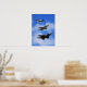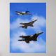 Leyendas de la potencia aérea. P51 Mustang F16 Fighting Falcon y F15 Eagle en formación.