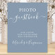 ¡Libro de invitados de fotos! Caligrafía simple pero elegante, este signo de libro de invitados de fotos de boda presenta libro de invitados en caligrafía elegante, y tomar una foto, ponerlo en el libro y dejar un mensaje para. ¡Personalice este elegante signo de boda con sus nombres! DERECHOS DE AUTOR © 2020 Judy Burrows, Black Dog Art - Todos los derechos reservados. Póster de foto de boda Caligrafía moderna azul polvoriento