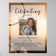 El póster conmemorativo perfecto para saludar a familiares y amigos cuando entren a la celebración de la vida de su ser querido. El diseño presenta una foto personal cuadrada, 5 líneas de texto personalizado y una foto de fondo de un atrapasueños que sopla en el viento. Puede cambiar fácilmente esto con su propia foto de fondo. Clásico pero único, esta plantilla es muy fácil de personalizar y también hará un hermoso recuerdo conmemorativo.