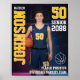 Póster personalizado de deportes para atletas y jugadores seniors. Esta plantilla de diseño personalizable es perfecta para eventos de deportes de bienvenida, noche de seniors, banquete de premiación de deportes o decoración de fiesta de graduación para su hijo, hija o estudiante atleta. Es una excelente manera de mostrar el retrato del jugador y los recuerdos de sus juegos deportivos. El diseño presenta un fondo abstracto y se puede personalizar con nombres, número de camiseta del jugador, equipos escolares o cualquier texto personalizado. Es un regalo y decoración único y significativo para su jugador.