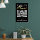 Elegante cartel conmemorativo fúnebre que incluye una imagen de su ser querido fallecido, el texto "por siempre en nuestros corazones", su nombre, fechas de nacimiento y defunción, un corazón de lámina de oro falso y la frase conmemorativa "ausente pero no olvidado".