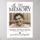 Poster conmemorativo del funeral que muestra una fotografía de tu ser querido perdido, el texto "en la memoria amorosa", su nombre, fechas de nacimiento/muerte, un corazón negro, y el recuerdo que dice "desaparecido pero nunca olvidado".
