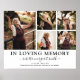 Crea tu propio póster conmemorativo con 5 fotos de tu ser querido, la conmovedora frase de condolencias "En memoria de", su nombre, fechas y un mensaje personal.