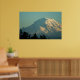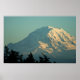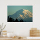 En esta foto de invierno del monte Rainier, que se eleva a 4.400 metros sobre Puget Sound a unos 50 millas al sudeste de Seattle, WA, la montaña muestra su lado frío. Árboles verdes verdes de color verde oscuro en la parte inferior izquierda bordean las estribaciones azules. La luz en el lado derecho de la montaña refleja la cima cubierta de nieve que casi llena el marco de la fotografía, y la silueta azul de sombras en el lado izquierdo, ligeramente más oscura que el cielo azul de la noche. ¡Brrr! ¡Coge tu muffler! Copyright Gail Storrs 2007.