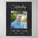Póster fúnebre negro o póster conmemorativo con la foto de su ser querido, el nombre de su ser querido en una escritura delgada y años viviendo en fuentes blancas elegantes contra un fondo negro con vegetación gris tenue. Un póster de servicio conmemorativo de vegetación con una gran foto. Celebrando la vida del póster personalizado con la foto, nombre y años de vida de su ser querido.
