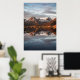 Fotografía paisajística de montañas cubiertas de nieve reflejando en el agua. Ubicación de la foto: Islas Vesterålen en el norte de Noruega, Escandinavia.