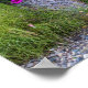 Adorna una pared con esta imagen que muestra una fotografía de un banco rústico con un cubo de coloridas flores amarillas y violetas a lo largo de un camino de piedra en un exuberante entorno verde ©Patricia AZ Phillips