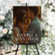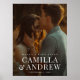 Un moderno overlay con nombres grandes y una foto completa de sangrado son las características de este cartel boda.