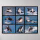 Nueve fotos en mosaico de ballenas asesinas (Orcinus orca)