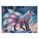 Escena de fantasía mística y detallada con un zorro astral con nueve colas de flujo, cada una con una cinta de brillantes luces en tonos de lavanda, oro verde azulado y suave. El pelo del zorro brilla con una suave radiancia, sutilmente estampado con constelaciones que cuelgan a través de su cuerpo. Se mueve silenciosa y elegantemente a través de un paisaje surrealista compuesto de islas flotantes, cristales brillantes y niebla etérea. El entorno desprende una sensación de magia y serenidad, con una luz suave y luminosa que resalta la forma elegante del zorro y el entorno místico. La escena captura un aura de maravilla, belleza celeste y misticismo antiguo, mezclando detalles intrincados con una atmósfera de ensueño.