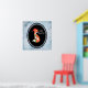 Un poster con un lindo ilustracion de zorro naranja dentro de un oval negro. Lleva puesto un sombrero de santa roja y tiene acentos decorativos verdes festivos sobre su cola y sobre su pecho. Feliz Navidad también está escrito dentro del marco oval. El fondo es de color gris de aspecto vintage con un patrón de puntos desvanecidos en la parte superior e inferior.