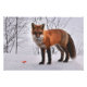 Poster brillante de vida silvestre, con una fotografía de un zorro rojo en la nieve y un solo hongo de gorro rojo. Una decoración de pared perfecta para los amantes de los animales.