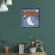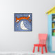 El zorro caprichoso salta sobre la luna dormida, las estrellas parecen animarlo. La imagen divertida para la guardería infantil, guardería, escuela y cualquier lugar donde el arte de los niños sea amado. El diseño original es de Christie Black of Creations from the Heart.