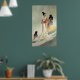 Reproducción de una fina obra de arte titulada "Fox Woman" de Bertha Boynton Lum. Retrato de una mujer japonesa con las siluetas de dos zorros. Pintado alrededor de 1916.