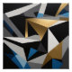 Una explosión de colores geométricos y texturas contrastantes. Los triángulos interconectados crean una ilusión óptica hipnótica, con toques de oro que agregan un lujoso brillo. Un trabajo que desafía la percepción e invita a la contemplación de la complejidad y belleza de las formas.