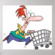 Un franco vendedor corriendo por ahí con un carro de la compra. Este diseño parece realmente efectivo en este Poster