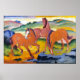 Caballos pastoreando en pastos pintados por Franz Marc.