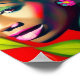Esta bella y audaz impresión de una mujer afroamericana es una impresionante vista para contemplar. Con una exuberante gama de colores vibrantes que casi saltan y saltan hacia ti, el diseño gráfico retrata a una mujer afroamericana que lleva una preciosa mezcla de flores rosas y verdes en su cabello, con un brillante fondo rojo. Su brillante delineador de ojos verde azul, acentúa aún más su belleza y atrae al espectador. Un tributo al arte y cultura afroamericanos en toda su gloria vibrante, este diseño gráfico seguramente será la pieza central de cualquier colección de arte.
