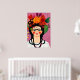 Poster Frida Kahlo de diseño bonito con elementos florales en un fondo rosa