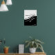 Friedrich Nietzsche cita al poster: "Y a los que vieron bailar se les creyó locos por los que no podían oír la música". Las olas del texto representan libertad, música y danza. Blanco y negro.