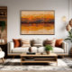Los tonos terrosos y salpicaduras de naranja chocan sobre cuadrículas blancas, simbolizando la tensión entre el orden y el instinto. Una explosión controlada que provoca y desafía la percepción.