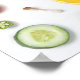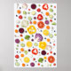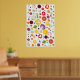 Este diseño presenta un gran collage de frutas y verduras coloridas.