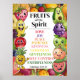 Frutos del Espíritu, este diseño cristiano presenta una colorida exhibición de lindas frutas con caras sonrientes y un verso de biblia para "Frutos del espíritu".