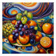 A.I. creó la composición surrealista de un arreglo de una variedad de frutas de diversas formas, tamaños y colores que satisfacían los sentidos del artista.