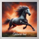 Este dramático ilustracion muestra a un caballo gris corriendo de un incendio de pradera.