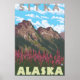 Fuegos artificiales y Montañas - Sitka, Alaska - Poster de Viajes Vintage fue creado en 2007. Esta imagen muestra escenas de Sitka, AK.