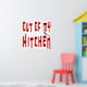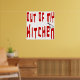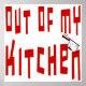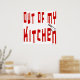 Out of My Kitchen Funny diciendo en letras rojas con un limpiador de carne en la letra n.