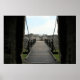 Una fotografía única, tomada desde el interior del Fuerte del Castillo de san Marcos en St. Augustine Florida, mirando a través del puente levadizo a la entrada del castillo. las paredes coquinas del fuerte enmarcan la composición.