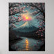 Póster Fuji Sunset Cherry Blossom Mountain Art