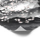 Este artículo capta la serena belleza de un paisaje japonés, combinando técnicas tradicionales de lavado de tinta sumi-e con delicados toques de color. A lo lejos, se encuentra el majestuoso Monte Fuji, cubierto de nevadas, envuelto en montañas brumosas. En primer plano, las ramas negras y negras de un árbol de flores de cerezo están en plena floración, con flores blandas rosas y blancas que añaden un contraste vibrante a los tonos grises monocromáticos del paisaje. La escena evoca una sensación de paz, tranquilidad y la belleza transitoria de la naturaleza.