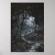 Póster Full Moon Dark Forest with Fawn Deer Art Dark