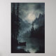 Póster Full Moon Mountain Lake Art Dark Woodland Moody